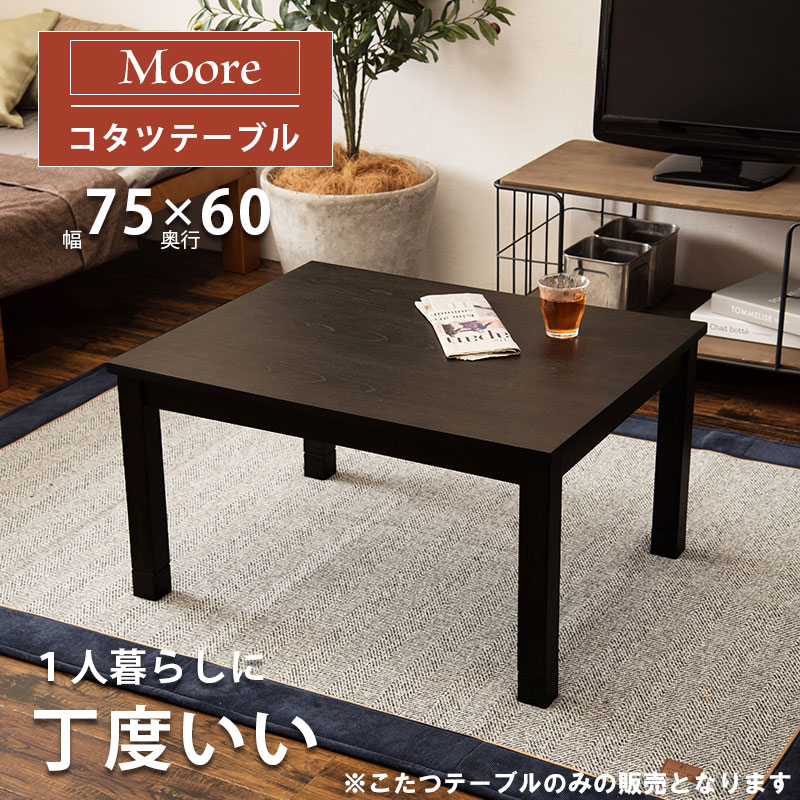 【Moore】 幅75 奥行60 高さ41cm こたつ テーブル 手元コントローラー 長方形 75×60 コタツ 家具調 家具調こたつ 暖かい テーブル こたつテーブル 継ぎ脚 継足 座卓 おしゃれ シンプル モダン 木製